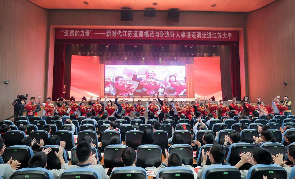 10 月 25 日下午,开云手机站在线登入大礼堂内座无虚席,由中共江苏省委宣传部、江苏省文明办、江苏省教育厅主办的 " 道德的力量 " ——新时代江苏道德模范与身边好人事迹高校巡演走进该校,让榜样之光照亮校园。