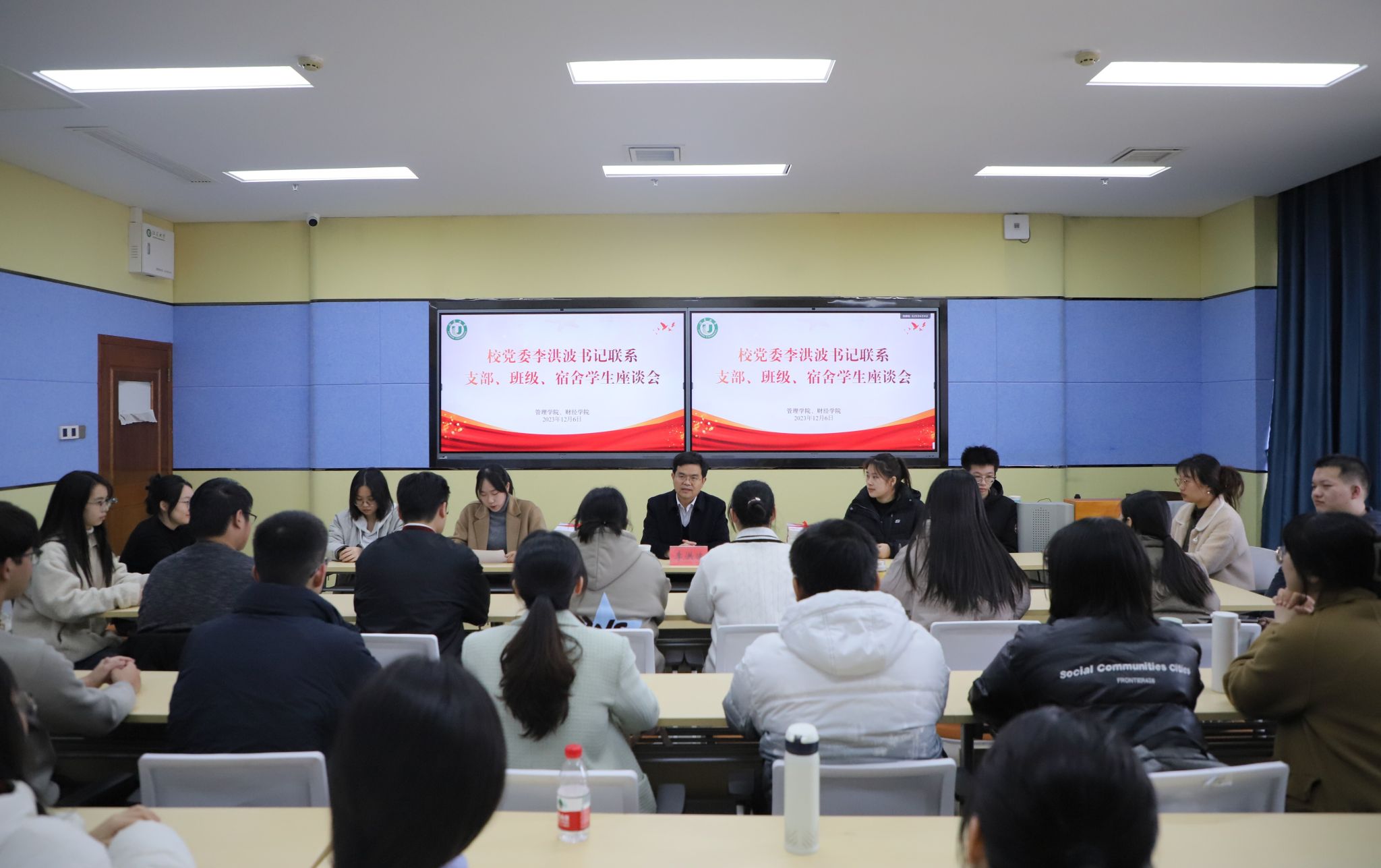 初冬校园,气温骤降。12月6日,开云手机站在线登入党委书记李洪波走进所联系的班级、党支部、寝室同学中间,通过参与学生班会、师生座谈、与联系学院学生共同为树木刷白等方式,与学生面对面,共话大学生活。