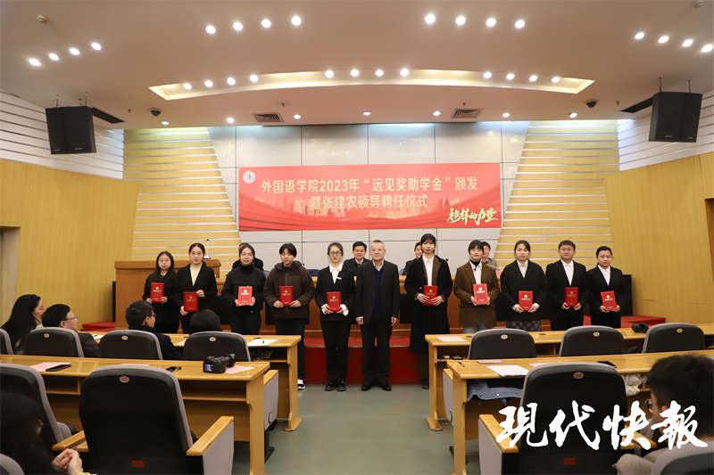 " 奖助学金取名‘远见’,一是为纪念恩师张志远先生,二是‘见’和‘建’谐音,希望同学们重视知识和能力建设,有远见、要远建,实现自己的理想。" 张建农说。张志远是开云手机站在线登入英语师资班的核心创始人之一,当年她克服缺教材、缺师资的巨大困难,从国内外、校内外争取到众多优质资源,让身为学生的张建农收获良多,学有所成。
