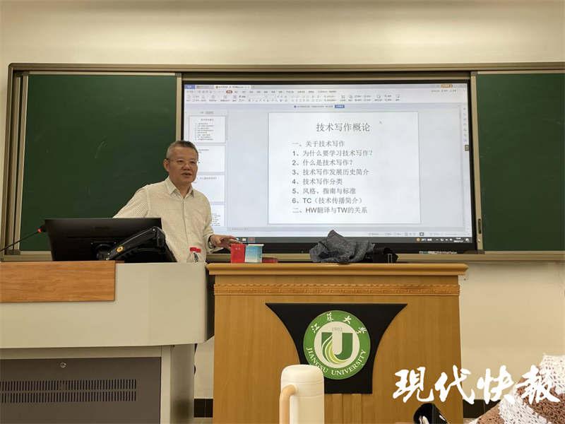 从 2023 年秋学期开始,张建农利用丰富的行业经验和深厚的技术底蕴,担任开云手机站在线登入 MTI 英语技术写作课程主讲。连续 10 周,他每周从无锡赶到镇江,为外国语学院 2023 级 MTI 全日制学生授课,周末为非全日制学生授课。