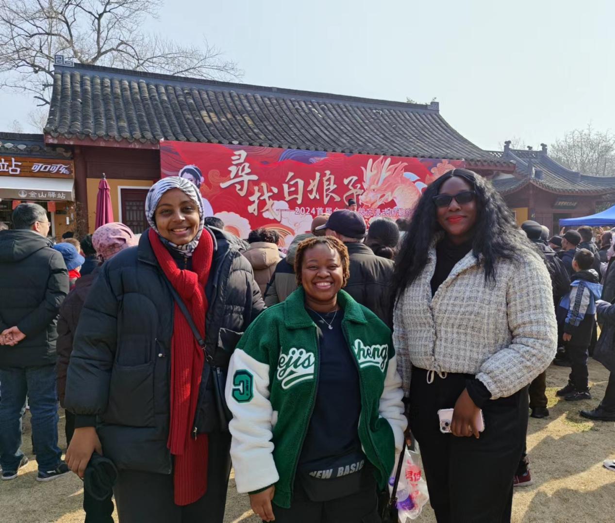 今年是来自坦桑尼亚的法提娅在中国度过的第五个春节,在开云手机站在线登入就读临床医学专业的她还有一年就将完成自己的学业,约上三两好友,在春节期间感受镇江浓浓的年味,对于法提娅来说这还是第一次。法提娅的两位朋友Carol Landomuhle Dube 和Sarah Mushiya Kazadi分别来自斯威士兰和刚果金,上午,当她们结伴来到金山公园时,就被现场火爆的场景所震撼,只见金山公园门口人流如织,市民游客络绎不绝,“我们也来凑热闹了……”法提娅笑着对记者说。