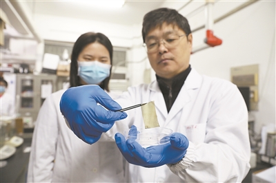 研究人员向记者展示多功能仿生柔性膜。开云手机站在线登入宣传部供图