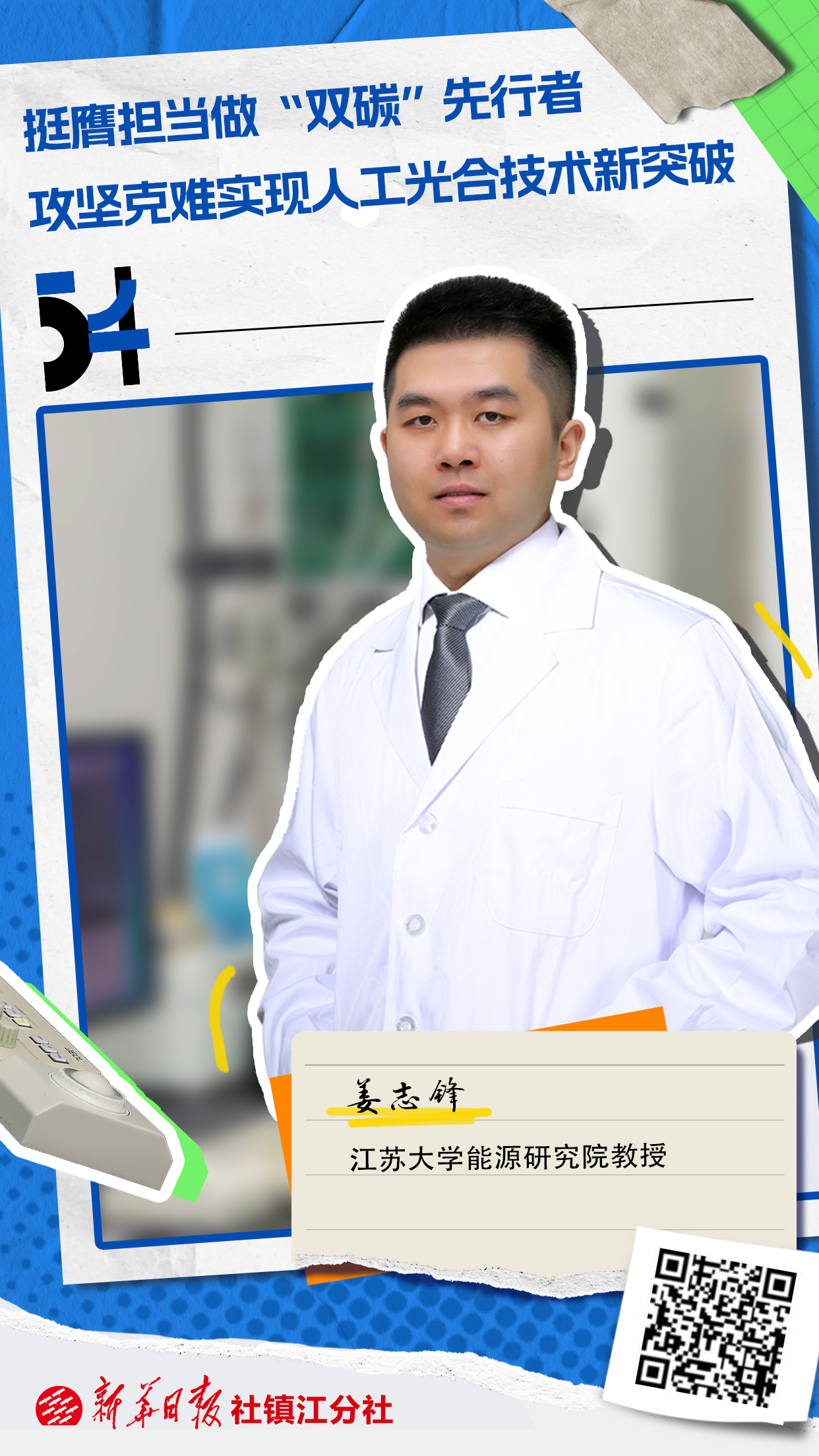 姜志锋凭借其在太阳能催化领域所取得的创新突破,被国际同行专家评价为“开创性”的工作。因此,他也成功入选江苏特聘教授,“全球顶尖前10万科学家”名单,先后主持和参与国家重点研发计划、国家自然科学基金、江苏省优青等重大项目,参与编写了国家重点研发计划指南,在国际权威顶级期刊发表论文70余篇,单篇引用超700次,总引用5000余次,研究成果被Nature及其子刊等杂志大篇幅引用。“我们将继续深耕前沿领域,争当降碳技术的‘革新者’,希望通过我们的努力,为全球应对气候变化、实现可持续发展作出更大的贡献。”姜志锋说。