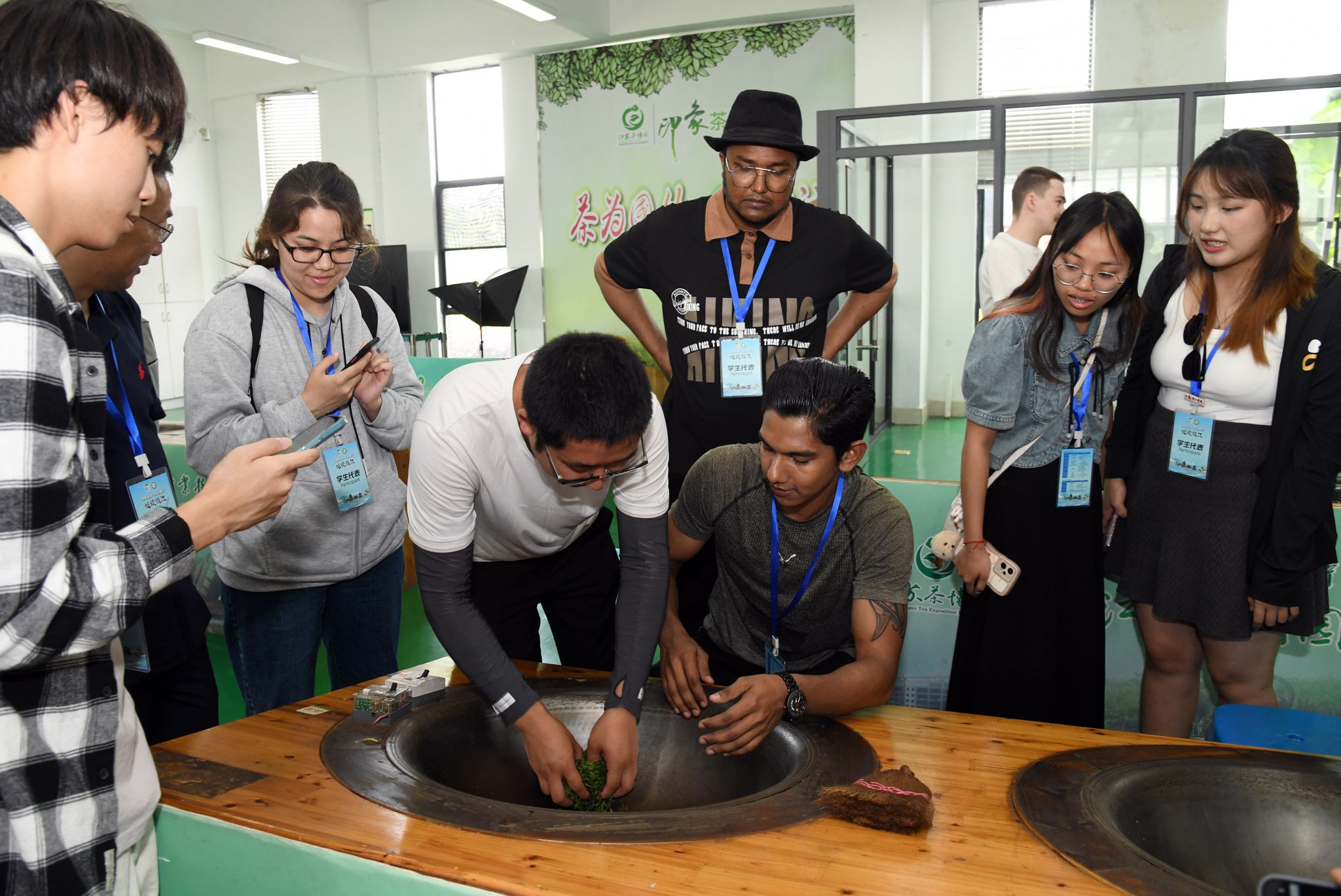 开云手机站在线登入海外教育学院直属党支部书记王丽敏为留学生讲授茶文化知识,留学生前往江苏茶博园体验了采茶、制茶、品茶等全过程。