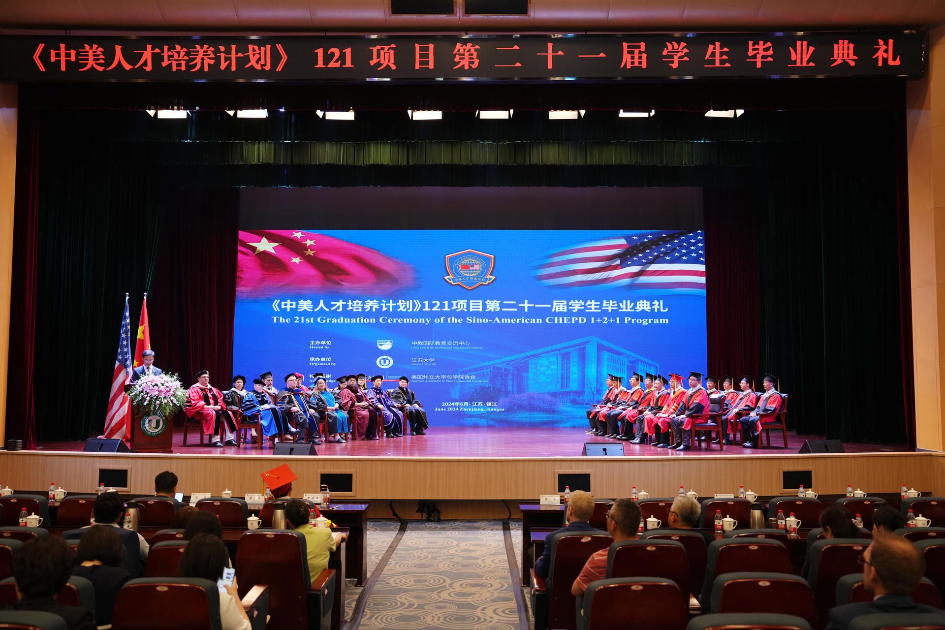 毕业典礼上,中美大学校长为毕业生代表颁发学位证书,还表彰了《中美人才培养计划》121项目2024年度优秀毕业生奖、杰出毕业生奖和卓越毕业生奖。