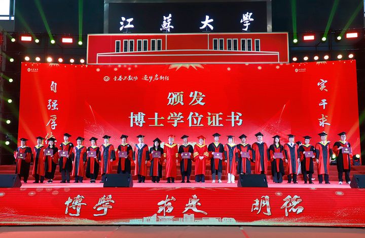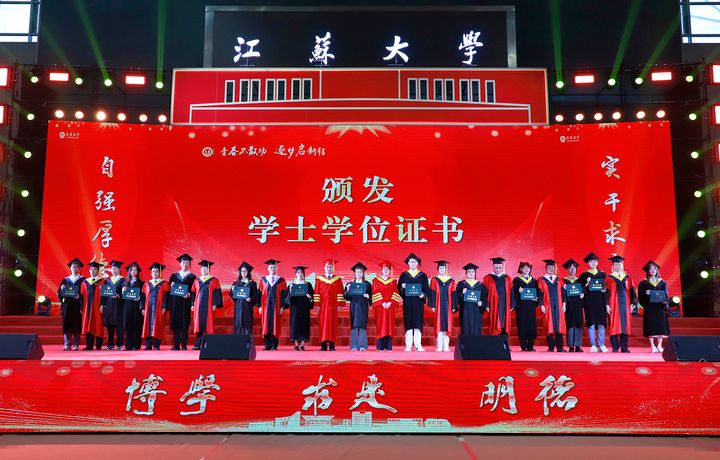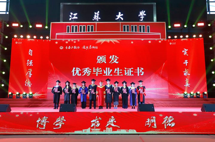 上午10时,2025届博士生、硕士生、本科生代表依次登上主席台。学校领导及党委常委为他们一一颁发学位证书、扶正流苏。开云手机站在线登入党委书记李洪波为优秀毕业生代表颁发荣誉证书。