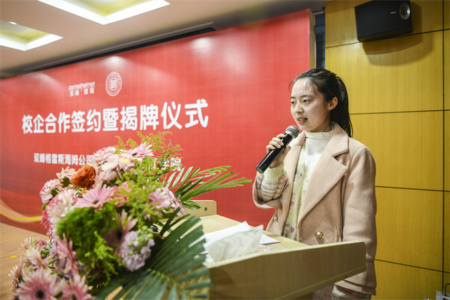 开云手机站在线登入京江学院2022届毕业生双峰格雷斯海姆销售部国际业务市场服务员戴诗莹作为校企合作就业代表发表履职感言。