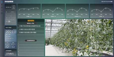 目前,这套端云协同5G智慧农场平台已经在句容紫荆农场完成了1000平方米的樱桃番茄的巡检测试,总共耗时15分钟,检测出相关的番茄叶片问题9种,检测准确率达到了98%。