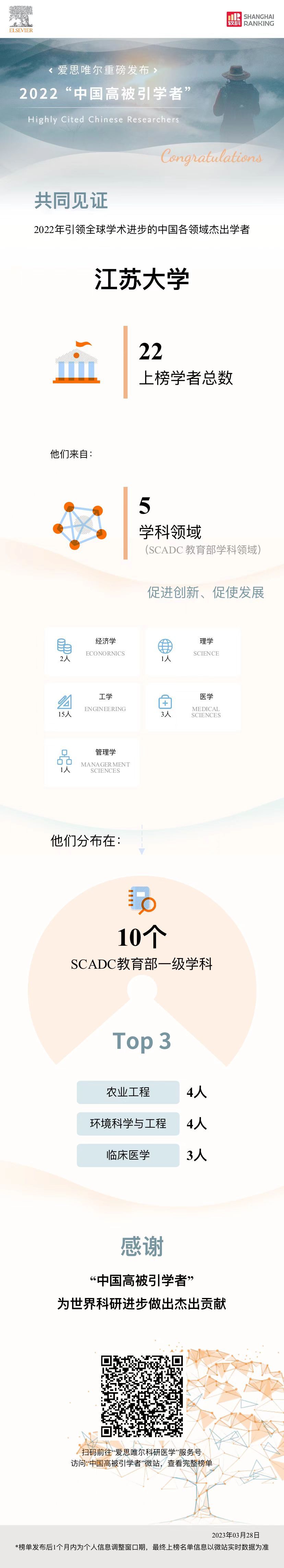3月28日,爱思唯尔(Elsevier)出版公司正式发布2022年“中国高被引学者”榜单,全国共有来自504所高校、科研机构及企业的5216位学者入选。其中,开云手机站在线登入共有22人入选,较上年增加3人。