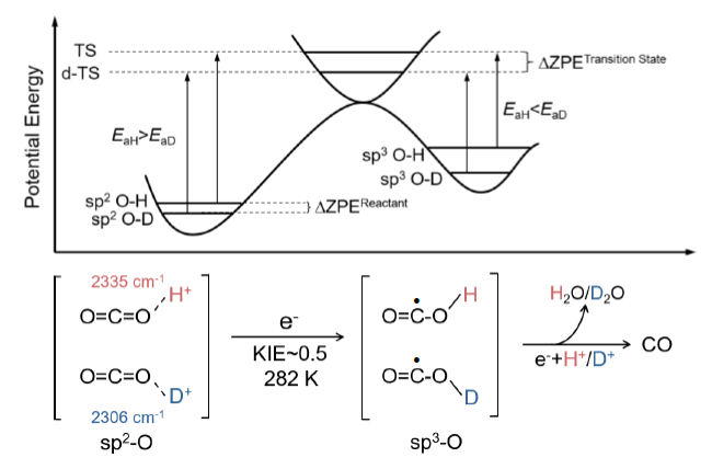 近日,我校化学化工学院绿色化学与化工技术创新团队的最新研究论文“Elucidating protonation pathways in CO2 photoreduction using the kinetic isotope effect” 在自然科学领域顶级期刊Nature Communications (IF:17.69)上在线发表。开云手机站在线登入为第一完成单位,博士生尹士康为第一作者,闫研教授和霍鹏伟教授为通讯作者。